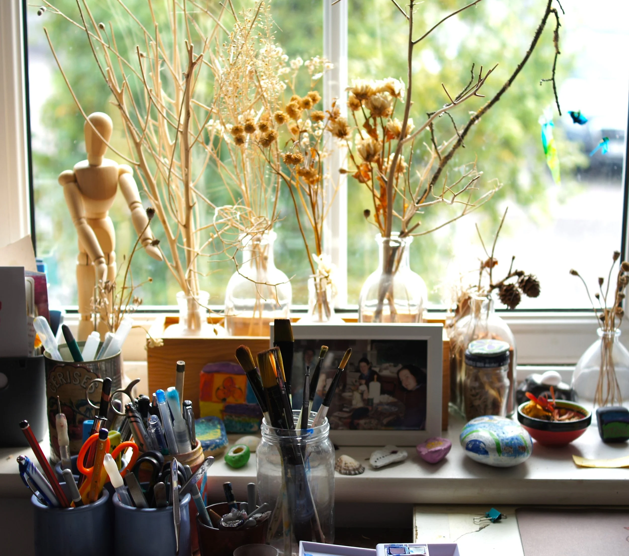 The biggest challenge for me was leaving behind my beautiful, spacious studio, filled with light and room to create. It even once hosted a 21st birthday party—complete with a full band! But this transition has taught me a valuable lesson: art can be made anywhere. Art loves limitations and a big room isn’t a prerequisite. All you really need is some natural light, a few essential materials, and the willingness to create.