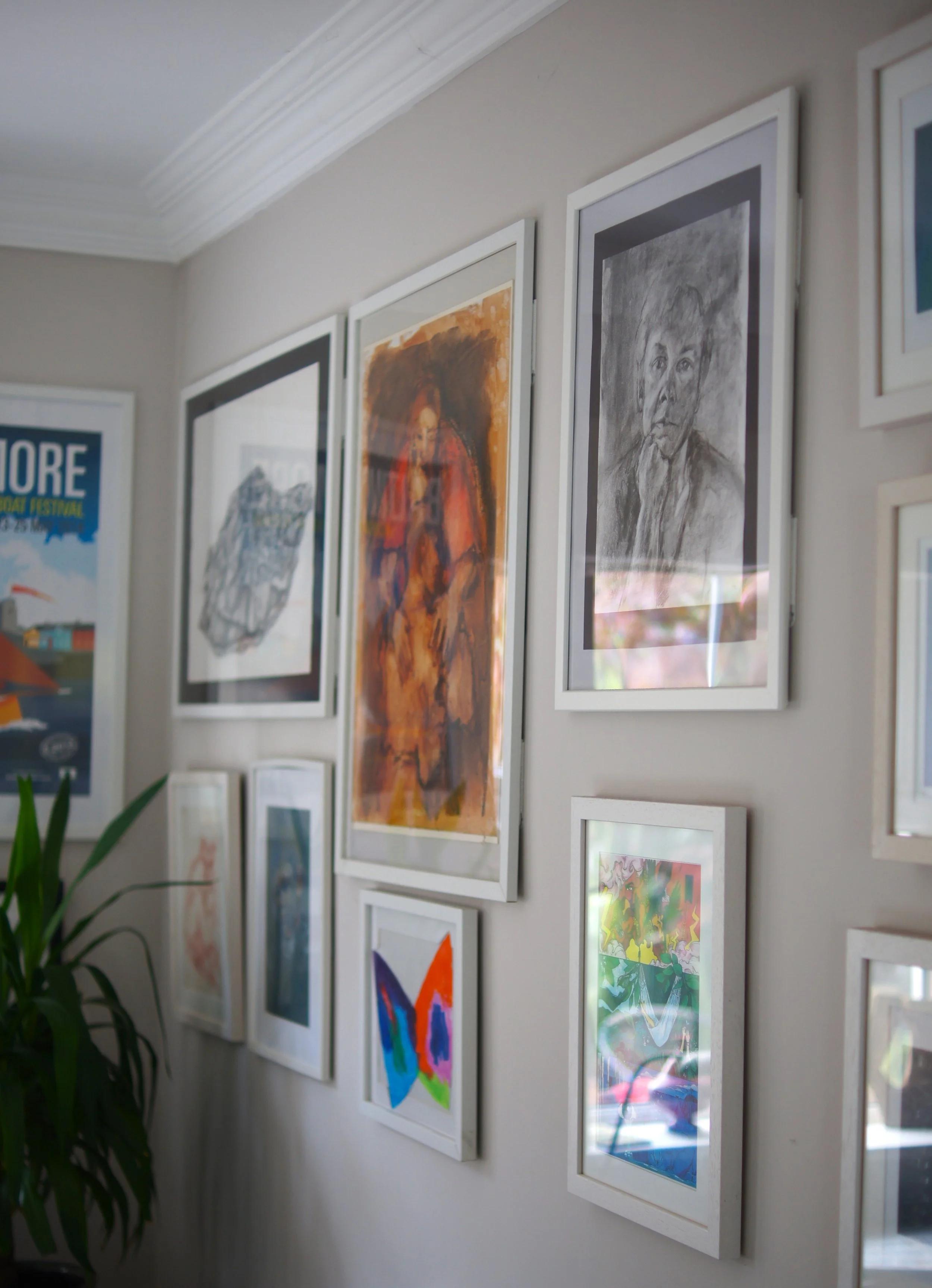 We’ve filled this new home with joy and colour. Walls crowded with paintings, shelves crammed with beloved books, and every corner alive with memories. The joyful art of our children and grandchildren brings warmth to every room. Handprints, collages, wild scribbles, and proud school projects now framed like treasures. It’s joyfully maximal, a kaleidoscope of family, memory, and creativity